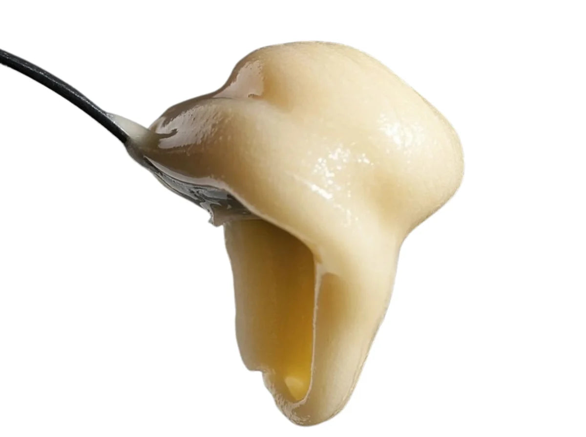 Aspect et texture D'une couleur très claire, ce miel passe d'un jaune d'or limpide à l'état liquide à un blanc nacré après sa cristallisation. Sa texture est particulièrement fine, crémeuse et onctueuse, fondant délicatement sur le palais.