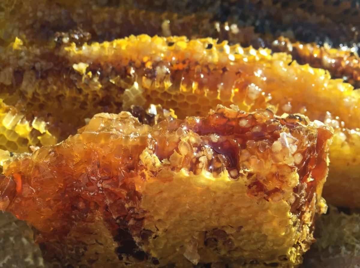 Aspect et texture Ce miel présente une couleur ambrée foncée, parfois dorée, avec des reflets profonds. Sa texture est naturellement crémeuse, résultat d'une cristallisation lente et sans aucun chauffage, ce qui lui confère une onctuosité parfaite pour la dégustation.