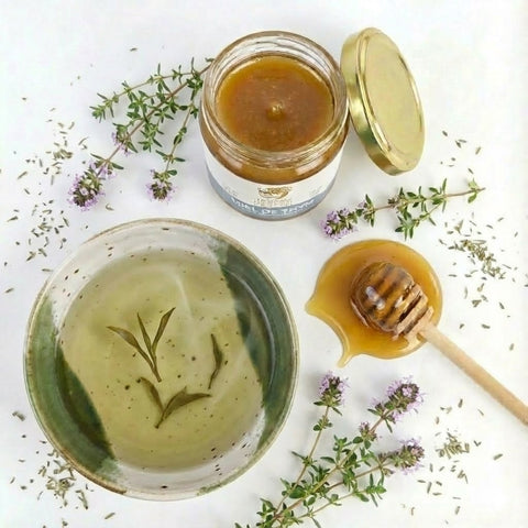 Atouts santé Reconnu pour ses vertus antiseptiques et cicatrisantes, le miel de thym est un allié traditionnel pour apaiser les maux de gorge et soutenir les voies respiratoires. Sa richesse en antioxydants en fait également un excellent stimulant pour les défenses naturelles.