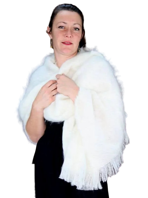 EMERO - Châle Femme en Mohair et Soie - Ecru - Origine : Hérault (France)