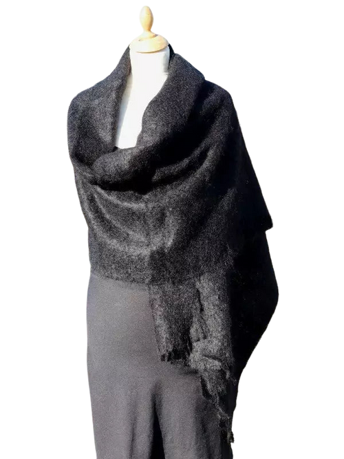 EMERO - Châle Femme en Mohair et Soie - Noir - Origine : Hérault (France)