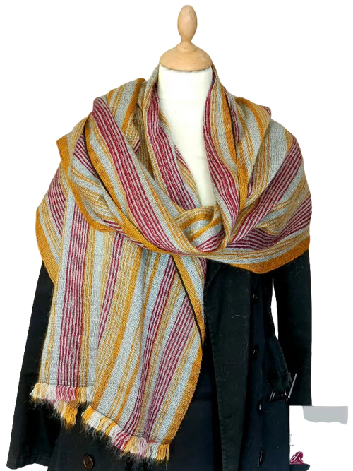 EMERO - Etole Luxe Femme - Soie & Mohair - Rayée Jaune / Bordeaux - Origine : France