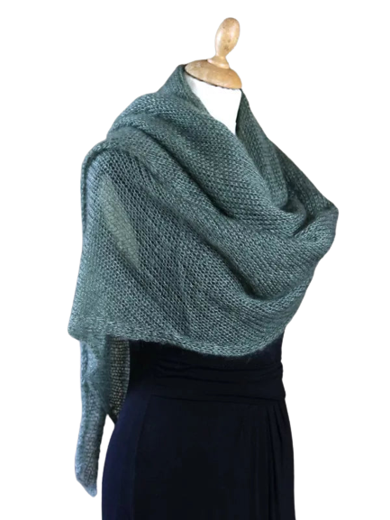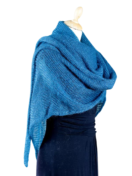 EMERO - Châle Femme en Mohair et Soie - Bleu Canard - Origine : Hérault (France)