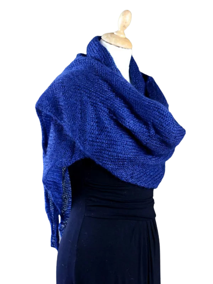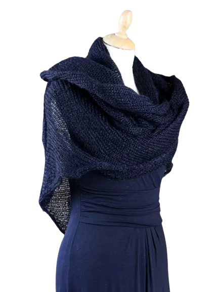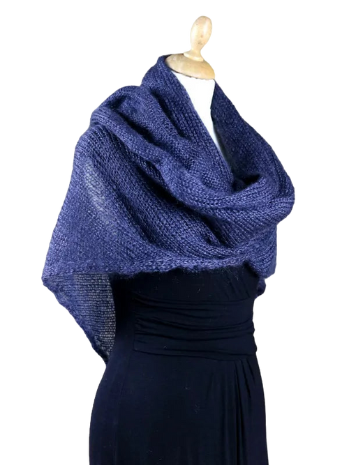 EMERO - Châle Femme en Mohair et Soie - Bleu Nuit- Origine : Hérault (France)