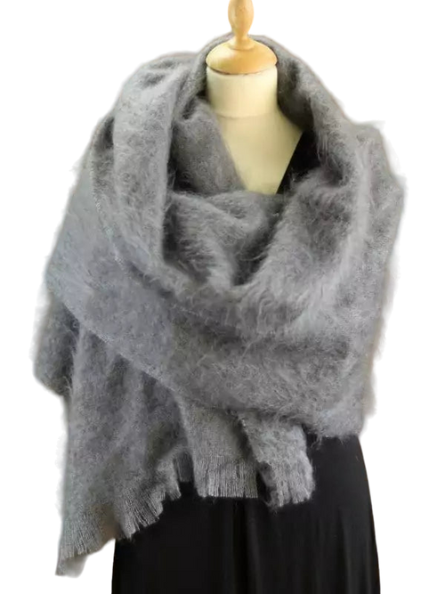 EMERO - Châle Femme en Mohair et Soie - Gris ardoise - Origine : Hérault (France)