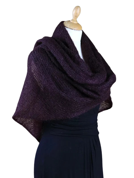 EMERO - Châle Femme en Mohair et Soie - Aubergine - Origine : Hérault (France)
