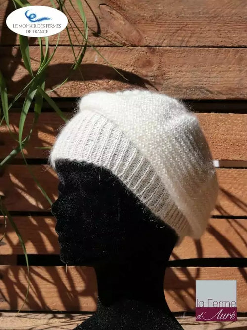 EMERO - Bonnet laine Mohair Ecru – Tricot main - Origine : France