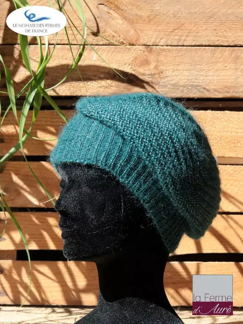 EMERO - Bonnet laine Mohair Paon – Tricot main - Origine : France