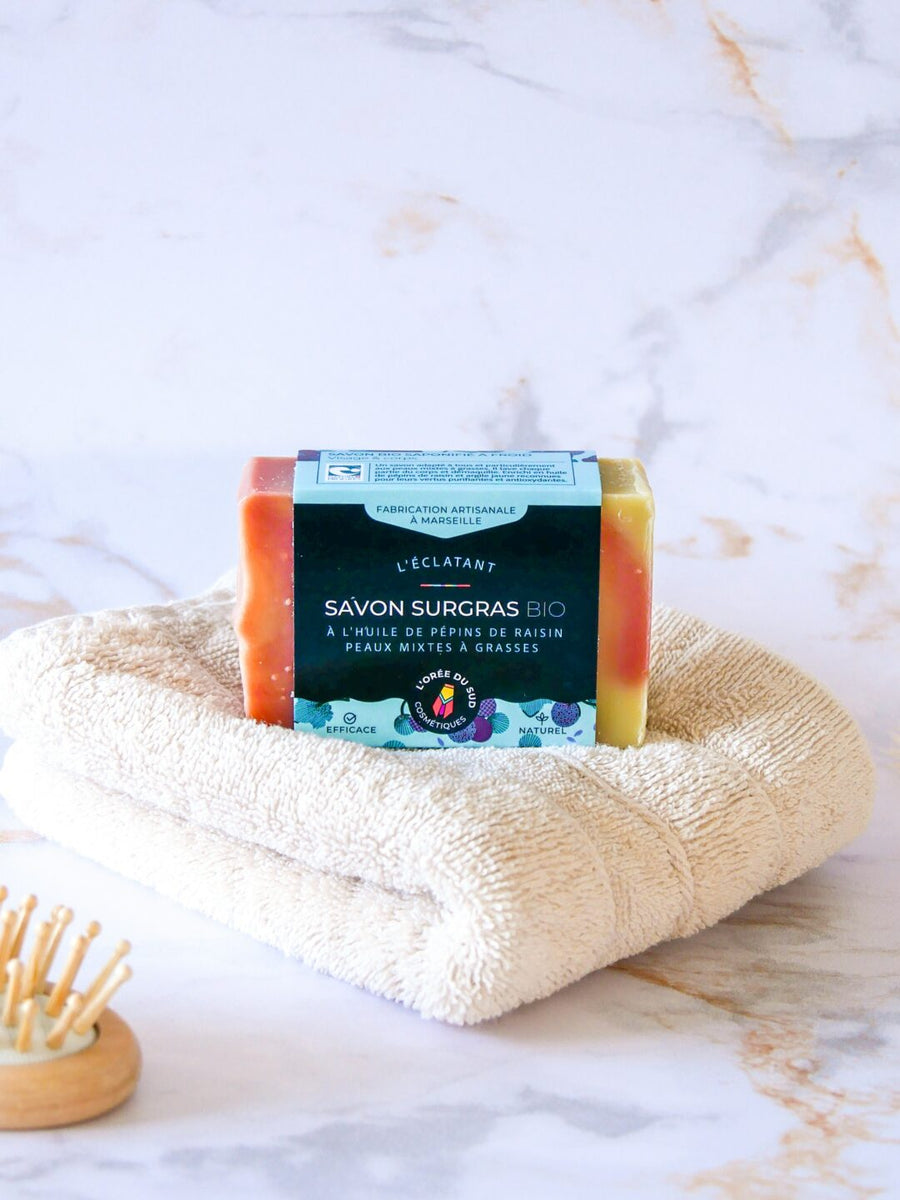 Fabriqué selon la méthode de saponification à froid, il est surgras à 7 %, sans huiles essentielles ni parfum et certifié Nature & Progrès. Il est composé à 100 % d'ingrédients naturels et biologiques, et convient à toute la famille, y compris les adolescents.